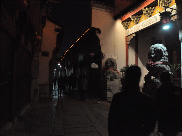 高淳老街那青石铺墁的街道,砖木结构的建筑,古朴华丽的老宅,挑檐、斗拱、垛墙、横衍、镂窗齐全,造型别致,特别是那沿街一排排的木板门,与以前的嘉泽老街多么相像。似曾相识的感觉一下子打开了许多人童年的记忆,这次异地重逢,大家异常激动又感慨万分,纷纷拿出相机,用镜头记录下这难得一见的盛景。