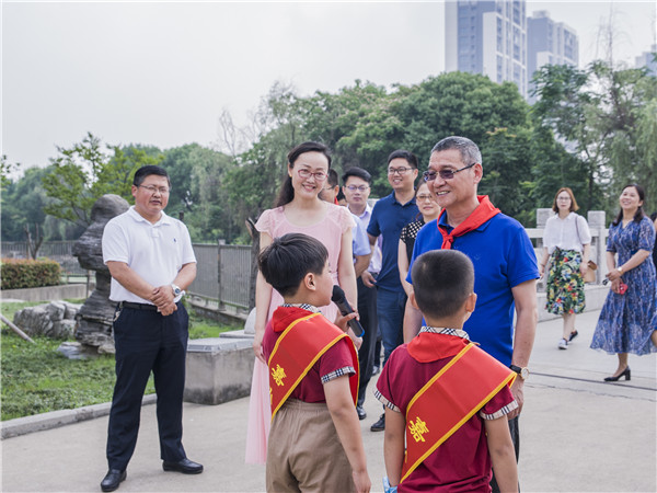 在进行了简短的慰问仪式后,臧主任一行饶有兴趣地观摩了嘉小十岁成长礼、小雨滴义卖、软式棒垒球等课程的展示活动。阶梯教室里,三年级全体队员们在学校精心规划的成长礼课程中感悟生命的精彩,珍爱身边的真情,回味自己的成长经历,迎接人生新的起点。幸福广场上,各班学生在老师组织下,文明有序地开展义卖活动。学生在多元角色的扮演活动中丰富了生活体验,增强才干,激发合作、理性、诚信的美好情感,展示友善、活泼的精神风貌。田径场上,小小讲解员向来宾们介绍着棒垒球运动的特点和意义,以及学校实施棒垒球运动课程的做法和历年来取得的成绩。