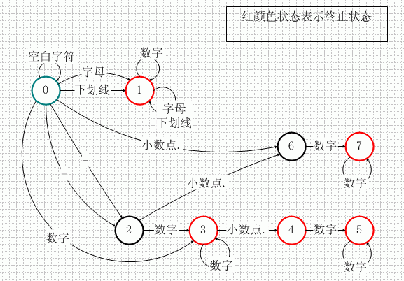 CStateChangeRule rule; rule.nCurState = 0; rule.nNextState = 1; rule.route[0].byStart = ''_''; rule.route[0].byEnd = ''_''; rule.route[1].byStart = ''A''; rule.route[1].byEnd = ''Z''; rule.route[2].byStart = ''a''; rule.route[2].byEnd = ''z''; m_ruleArr.Add(rule); rule.Clear();例子程序中的DFA如图二所示。