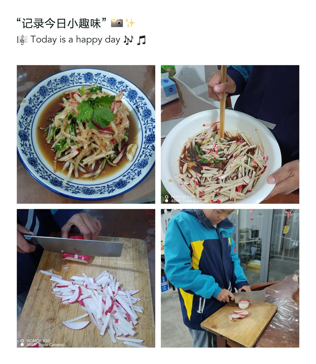 劳动结束后,队员们将亲手拔出的萝卜洗净,大展厨艺。他们与家人围坐在一起,细细品味着这些萝卜美食,每一口都饱含着对大自然馈赠的感恩与敬意。舌尖上的美味,不仅让他们领略到了萝卜独特的风味,而且让大家深深感受到了田园生活的美好与宁静,仿佛一曲悠扬的田园牧歌在心中久久回荡。